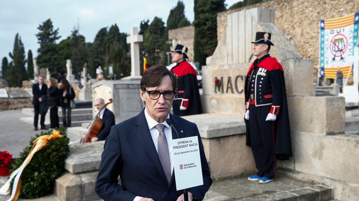 Desde el mismo sitio, Illa ha pedido actuar con "convicción, ambición y capacidad de acuerdo" entre catalanes, para hacer "progresar" a Cataluña, cuando encabezaba una delegación de su Govern en dicha tradicional ofrenda floral. Acompañado de sus consellers y conselleres, ha querido "rendir homenaje a la persona que inició el camino del autogobierno de Cataluña". "No puede haber un país grande que no proteja y reivindique la continuidad institucional. Cada presidente, cada gobierno, ha tomado las decisiones de acuerdo con las circunstancias del momento y de la época", ha destacado.