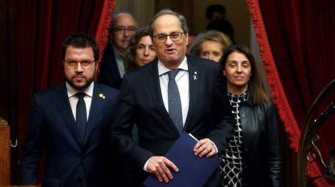 Después de que la Mesa del Parlament no votara sobre la retirada del escaño de Torra, Junts per Catalunya quiere que se debate y se someta a votación en el Pleno.