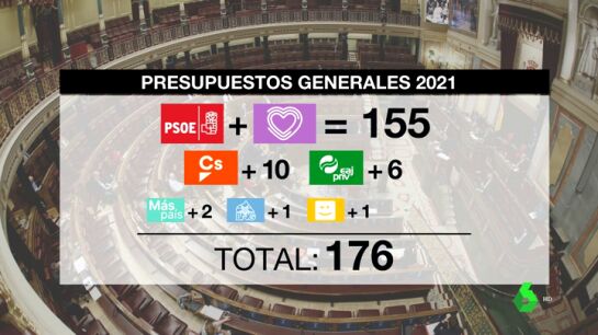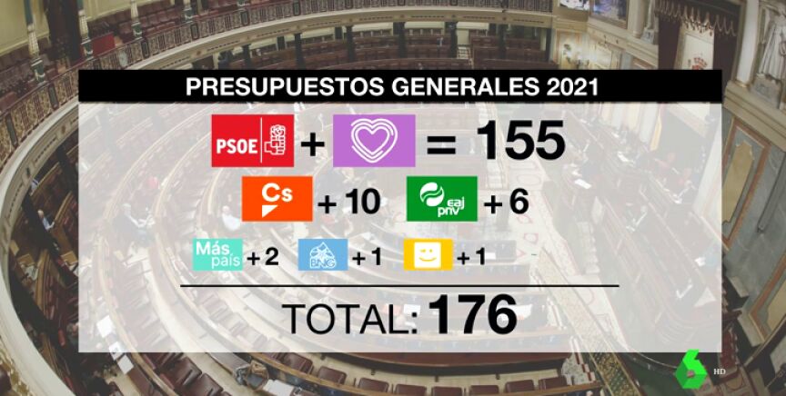 El Gobierno de coalición tiene 155 diputados, por lo que le faltan 21 para salvaguardar su proyecto frente a las enmiendas. Por tanto, salvarían la votación si cuentan con los 10 de Ciudadanos y los 6 de ONV y el de otros probables apoyos como 2 de más País, 1 de BNG, 1 de Compromís y 1 de Teruel Existe.