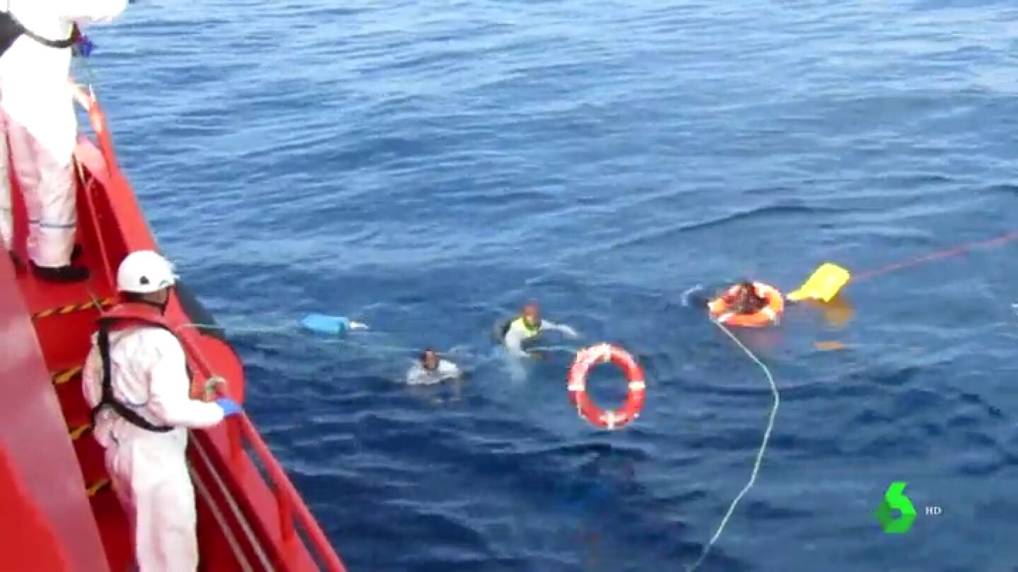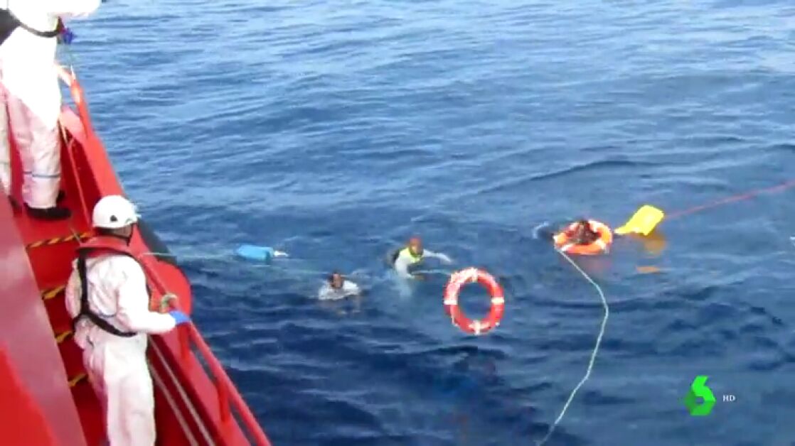 Durante un rescate en el mar se vivieron momentos de desesperación cuando decenas de migrantes, atemorizados, se abalanzaron para intentar escapar del agua. En el buque de Salvamento Marítimo solo había dos personas en cubierta.