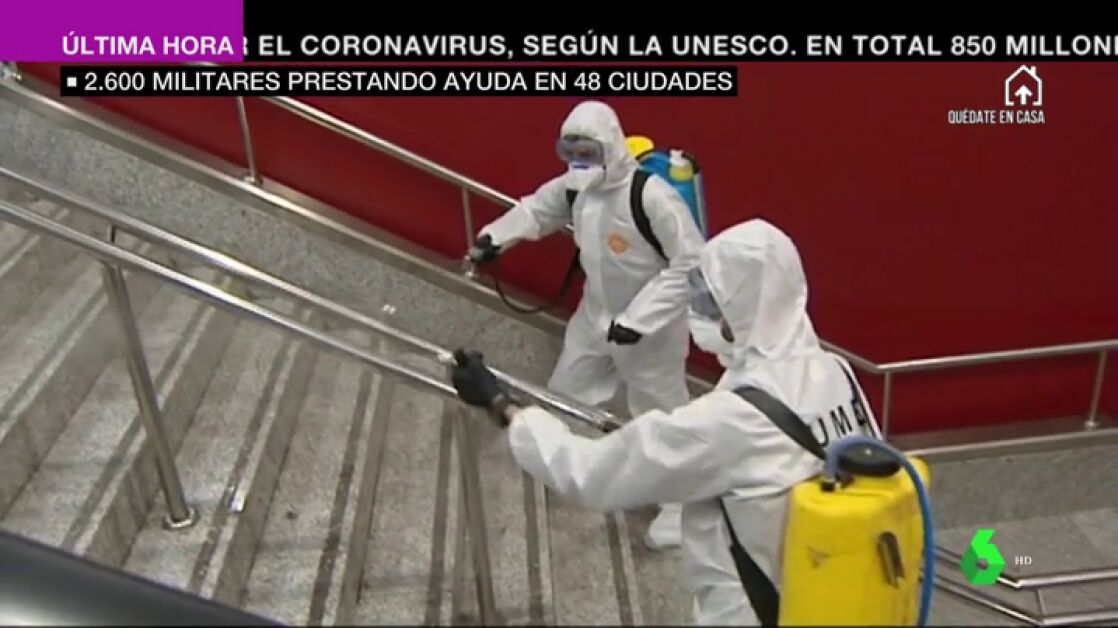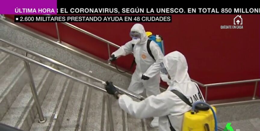 Los soldados de la Unidad de Emergencia Militar ya han comenzado a desinfectar todas esas zonas son focos de contagio peligrosos, pero también necesarios como estaciones y hospitales de 28 ciudades españolas.