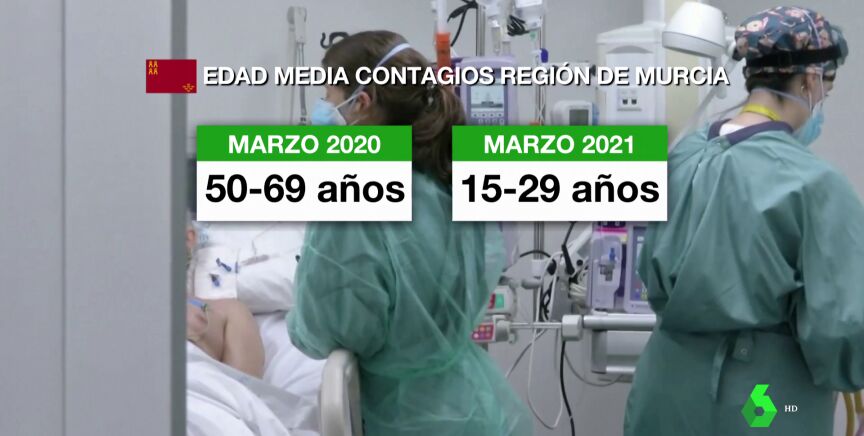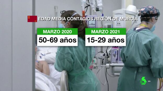 La mayor bajada la hemos visto en Murcia, donde la edad media del contagiado pasó de ser entre 50 y 69 años a entre 15 y 29, casi tres décadas más joven.