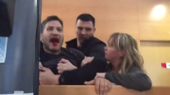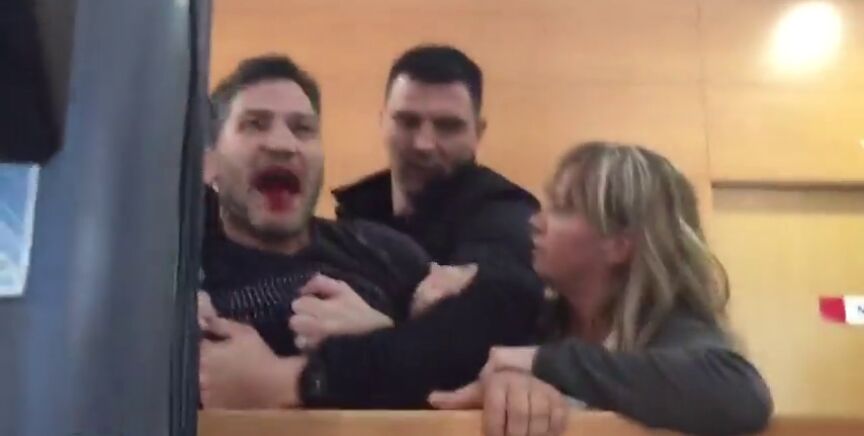 El activista Lagarder Danciu irrumpe en el debate sobre vivienda en Barcelona con la boca ensangrentada: "Traidores"