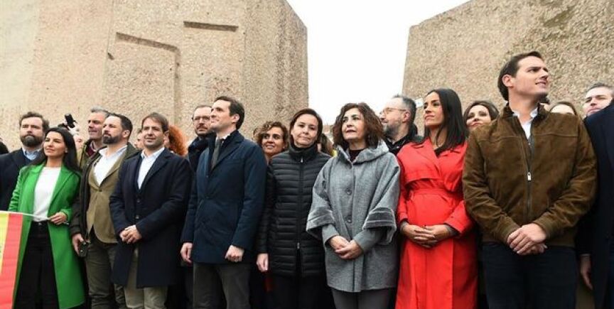 Hoy se cumple un año de la foto conjunta de Pablo Casado, Albert Rivera y Santiago Abascalen la manifestación de Colón para reclamar una 'España unida'. Se convirtió en una de las imágenes del pasado año, con la que PP, Ciudadanos y Vox quisieron mostrar su rechazo a Pedro Sánchez.