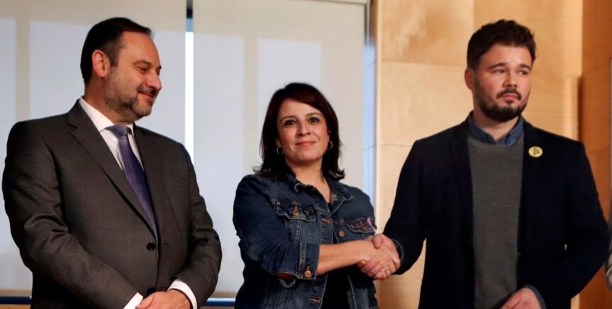 Optimismo tras las primeras reuniones de Adriana Lastra dentro de esa ronda de contactos con los partidos políticos de cara a la investidura de Pedro Sánchez, entre ellos con ERC, JxCat y, por primera vez, con Bildu.