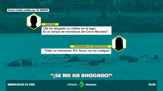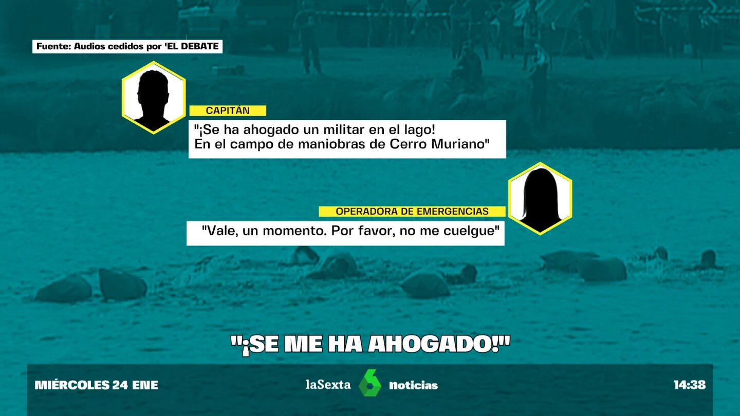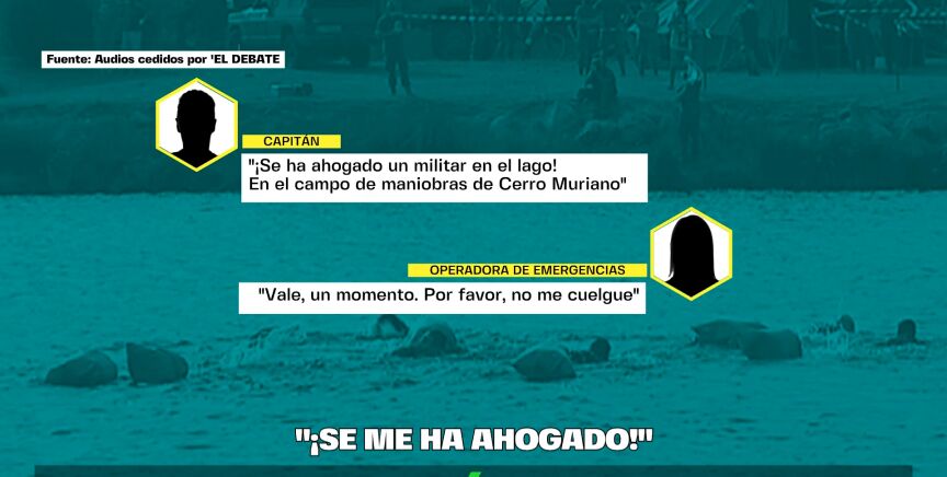 La primera de las comunicaciones ocurre escasos momentos después de que tuviera lugar la tragedia. El capitán explica muy nervioso a la operadora de emergencias que la situación es grave. "Se ha ahogado un militar en el lago, en el campo de maniobras de Cerro Muriano. Necesitamos a alguien de buceo lo más rápido posible; que venga en helicóptero, no encontramos al tío". La mujer, al otro lado de la línea, pregunta si el varón está vivo, y el capitán insiste: "Es que no lo encontramos, necesitamos un equipo de buceo".