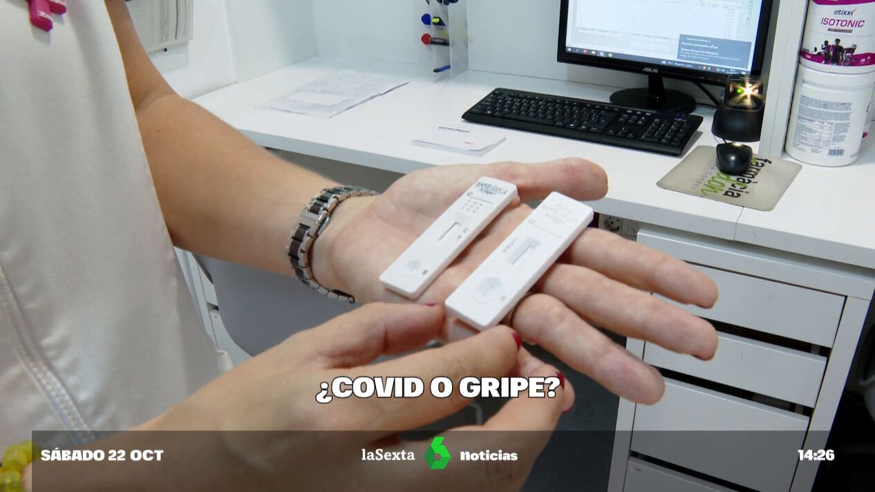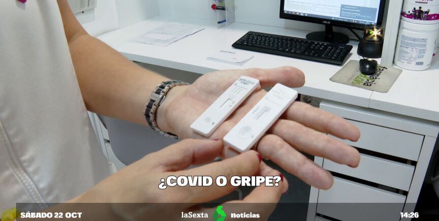 Los test combinados que diagnostican COVID y gripe al mismo tiempo ya se venden más que los tradicionales. Tienen el mismo formato que los que nos hacíamos cuando estalló la pandemia, solo que ahora son dos pruebas. Con un test nasal o salival, en 15 minutos están los resultados. "Si sale más de una raya, es que tenemos gripe o COVID, eso puede pasar. Y si no sale ninguna, es que no tenemos ninguna de estas patologías y podría ser un resfriado común", ha contado a laSexta Ariadna Condon, farmacéutica.