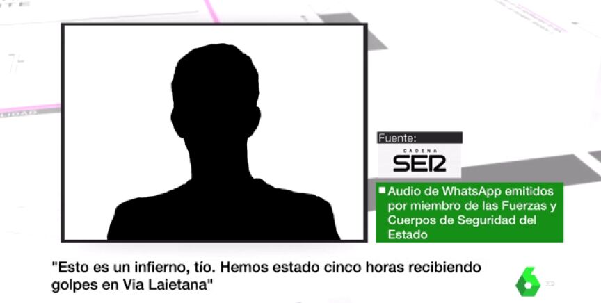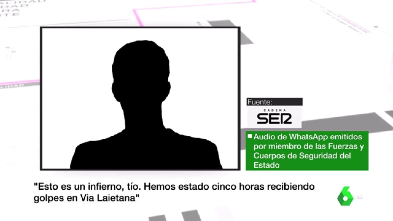 Varios agentes de las fuerzas de seguridad han descrito la situación así en unos audios recogidos por 'Cadena Ser': "Un p*** infierno, tío. Hemos estado cinco horas recibiendo golpes en la Vía Laietana". Son los audios compartidos entre los agentes la noche de mayor violencia en Barcelona.