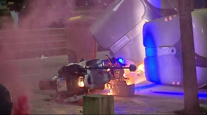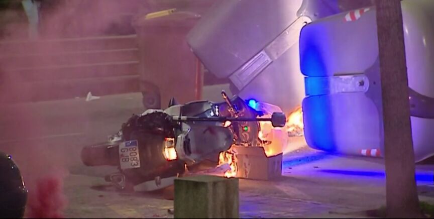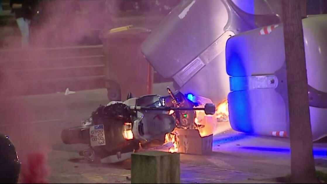 En este vídeo vemos las imágenes de algunos de los destrozos causados durante la protestas, entre los que figuran la quema de vehículos policiales.
