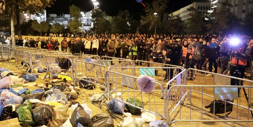 Al igual quesucedió el pasado domingo en Barcelonaen una concentración convocada por 'Pícnic por la República', cerca de quinientas personas, según la Guardia Urbana, han lanzado bolsas de basura, esta vez ante la Subdelegación del Gobierno en Girona.