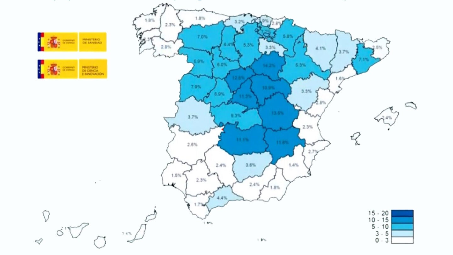 Mapa de la seroprevalencia por provincias: del 1,1% de inmunidad en Ceuta al 14,2% en Soria