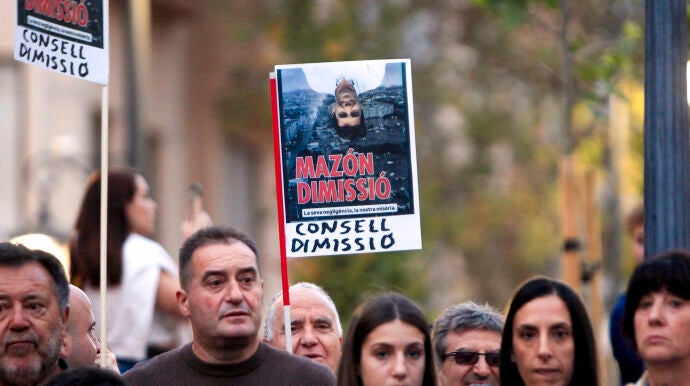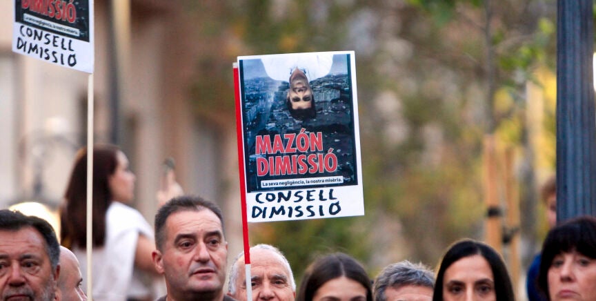 "El pueblo valenciano se ha visto durante cinco días abandonado a su suerte y a trabajar de manera solidaria y voluntaria". "Exigimos la dimisión de Mazón, y que se inicie una investigación judicial que depure las responsabilidades". Los mensajes eran claros durante toda la protesta. Una manifestación de rabia y duelo donde la impotencia se transformó en gritos hacia la Generalitat y donde el mensaje que más se repetía era el de "Mazón, dimisión'