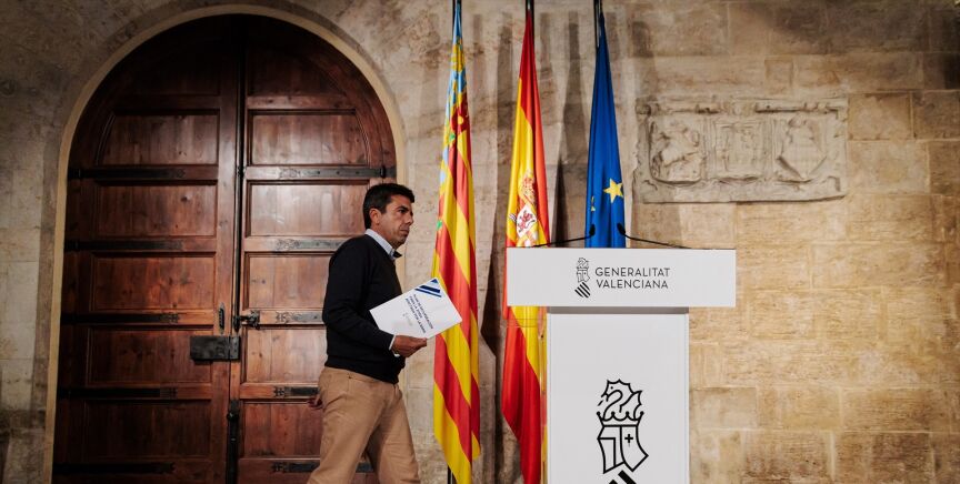 El president de la Generalitat Valenciana, Carlos Mazón, ha eludido este lunes hablar de la propuesta del líder del PP, Alberto Núñez Feijóo, para declarar la emergencia nacional. El 'popular' se ha limitado a anunciar medidas y a solicitar otras al Gobierno central, sin hacer ninguna mención a Feijóo en una comparecencia institucional sin preguntas y con gritos de 'Mazón, dimisión' de fondo.