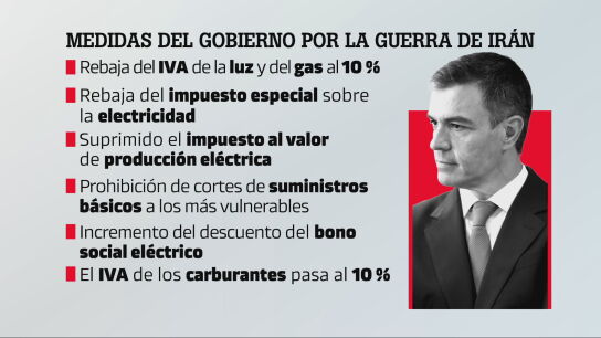El presidente del Gobierno, Pedro Sánchez, detallará esta mañana las claves del plan para combatir el impacto socioeconómico de la guerra en Oriente Medio, que se aprueba hoy en el Consejo de Ministros. Fuentes del Gobierno adelantan a laSexta varias de las medidas avanzadas hasta ahora, como la rebaja del IVA de la luz, el gas y los carburantes al 10%.