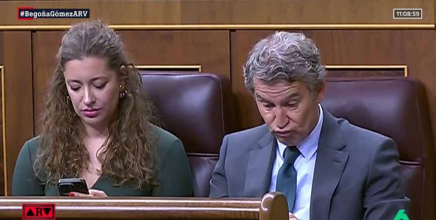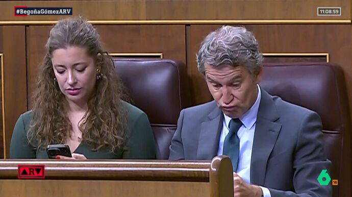 Feijóo no ha podido ocultar el impacto que le ha provocado este nuevo auto que acerca a la esposa del presidente del Gobierno al banquillo. El 'popular' ha fruncido su boca asintiendo mientras leía la noticia y luego ha comentado satisfecho con sus compañeros de bancada.