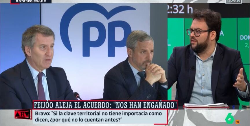 El periodista José Enrique Monrosi, de elDiario.es, recuerda la buena sintonía que había la semana pasada entre PP y PSOE tras la amenaza de los aranceles de Trump, tanto así que el propio Alberto Núñez Feijóo dijo que Pedro Sánchez "había acertado" en la decisión de reunirse con los grupos sociales y económicos, tras la decisión del presidente de los EEUU, y la "entusiasmo" que había por ello en el plató de Al Rojo Vivo.