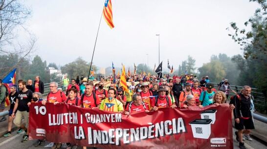 Sin embargo, no ha sido la única, ya que a las 6:00 horas la marcha de poniente ponía rumbo a Lleida en un ambiente totalmente festivo. Y a las 14:00 horas ha arrancado una tercera. En total, 62 kilómetros para poner en valor el 1 de octubre.
