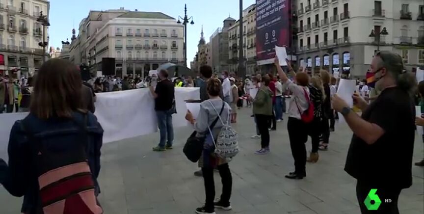 Segundo domingo de protestas en Madrid con una serie de concentraciones pensadas para no superar las 50 personas con la pretensión de cumplir con la distancia de seguridad obligatoria, aunque no se ha respetado en todas ellas. El objetivo es mostrar el rechazo a las medidas aplicadas por el Gobierno de Ayuso.