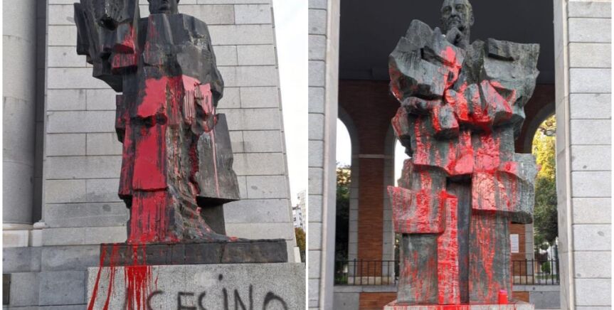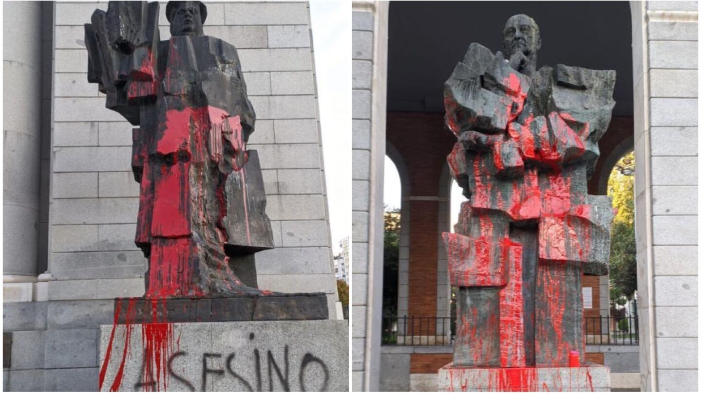 Ambos monumentos han amanecido este domingo pintados de rojo y con la palabra 'asesino' en la base. El ataque coincide con los disturbios que se registraron esa noche en la capital española protagonizados por grupos de radicales que protestaban por el toque de queda impuesto por el Gobierno para frenar la expansión de la epidemia de coronavirus. Desde el PSOE no han tardado en denunciar los hechos y han advertido: "No van a conseguir callarnos. No van a conseguir que el odio impregne nuestra sociedad".