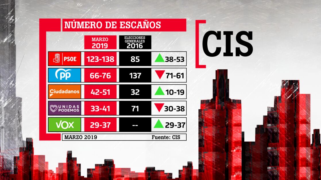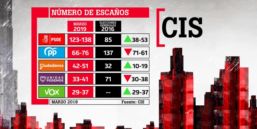 Primeras reacciones de los partidos políticos a la encuesta del CIS, que da una victoria cómoda al PSOE con entre 123 y 138 escaños, doblando prácticamente al PP, que sacaría entre 66 y 76 escaños el 28A.