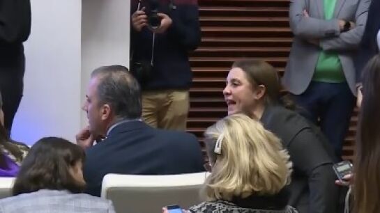 Este martes, Ángela Vera le ha preguntado al dirigente de Vox por esas falsas acusaciones y Ortega Smith, señalándola con un dedo, le ha insistido en que ella habló con la mujer.