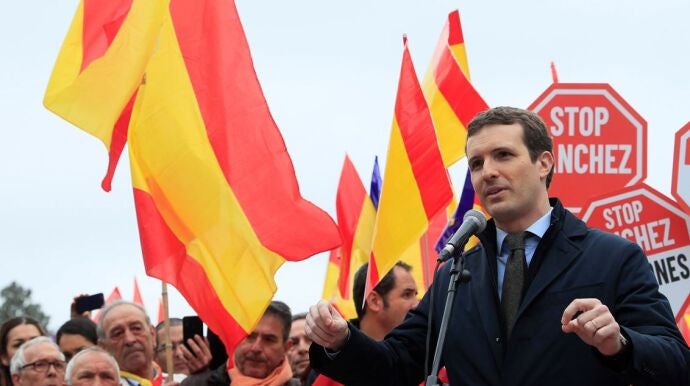Casado ha denunciado la "rendición socialista" y los "tratos bajo la mesa" que, a su juicio, ha desarrollado el Gobierno de Pedro Sánchez "desde la moción de censura" con el único objetivo de "perpetuarse en el poder" y admitiendo para ello el "chantaje" de los independentistas.