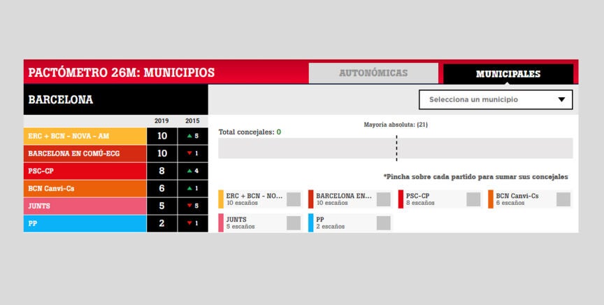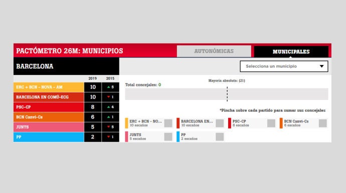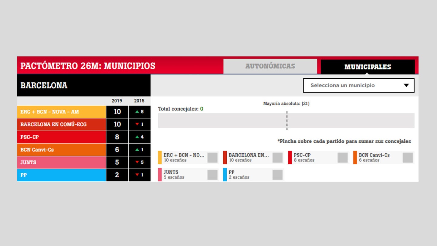 Pactómetro 2019: configura tus pactos de Gobierno en el Ayuntamiento de Barcelona