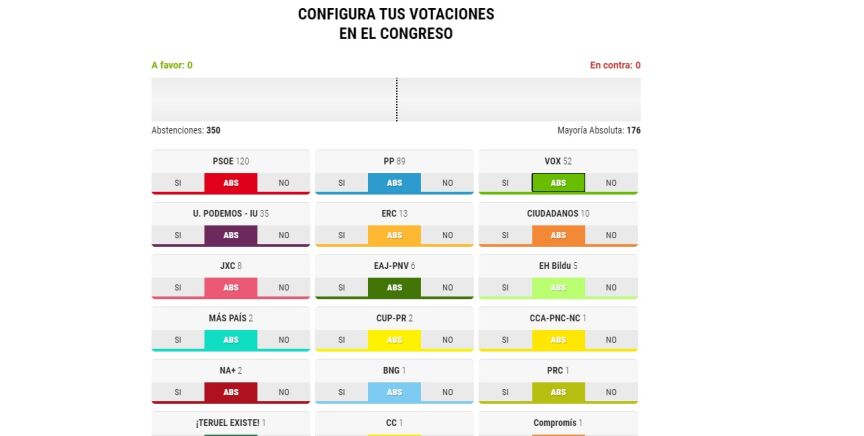 Con el voto a favor de sus 52 parlamentarios, la formación de extrema derecha se queda lejos de los 176 necesarios para alcanzar la mayoría en el Congreso de los Diputados. Algo que, se prevé, no sucederá. La principal incógnita es qué postura tomará el Partido Popular, ya que la formación liderada por Casado ha anunciado que no la apoyará, pero no ha desvelado si se abstendrá o votará en contra. UPN ha adelantado que votará en contra por considerarla "fuera de lugar".