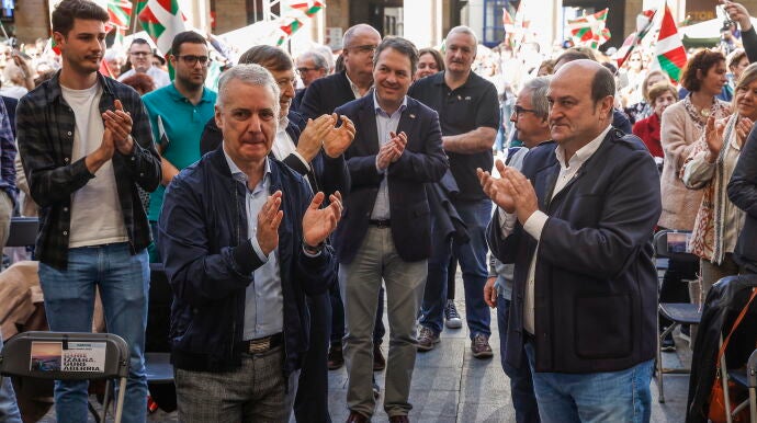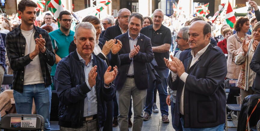 Además, ha destacado que "Europa es el mayor espacio de libertad, respeto a los derechos humanos y justicia social de todo el mundo" y por ello el PNV "es europeísta y está siempre con Europa, la democracia y el progreso. ¡Euskadi Nación europea!", ha reclamado. Ha afirmado que la celebración del Aberri Eguna de este año "tiene un aroma electoral" porque faltan 50 días para las elecciones del 28 de mayo y ha animado a los militantes de su partido a responder a su "toque de corneta" ante esos comicios para que el PNV siga liderando las instituciones.
