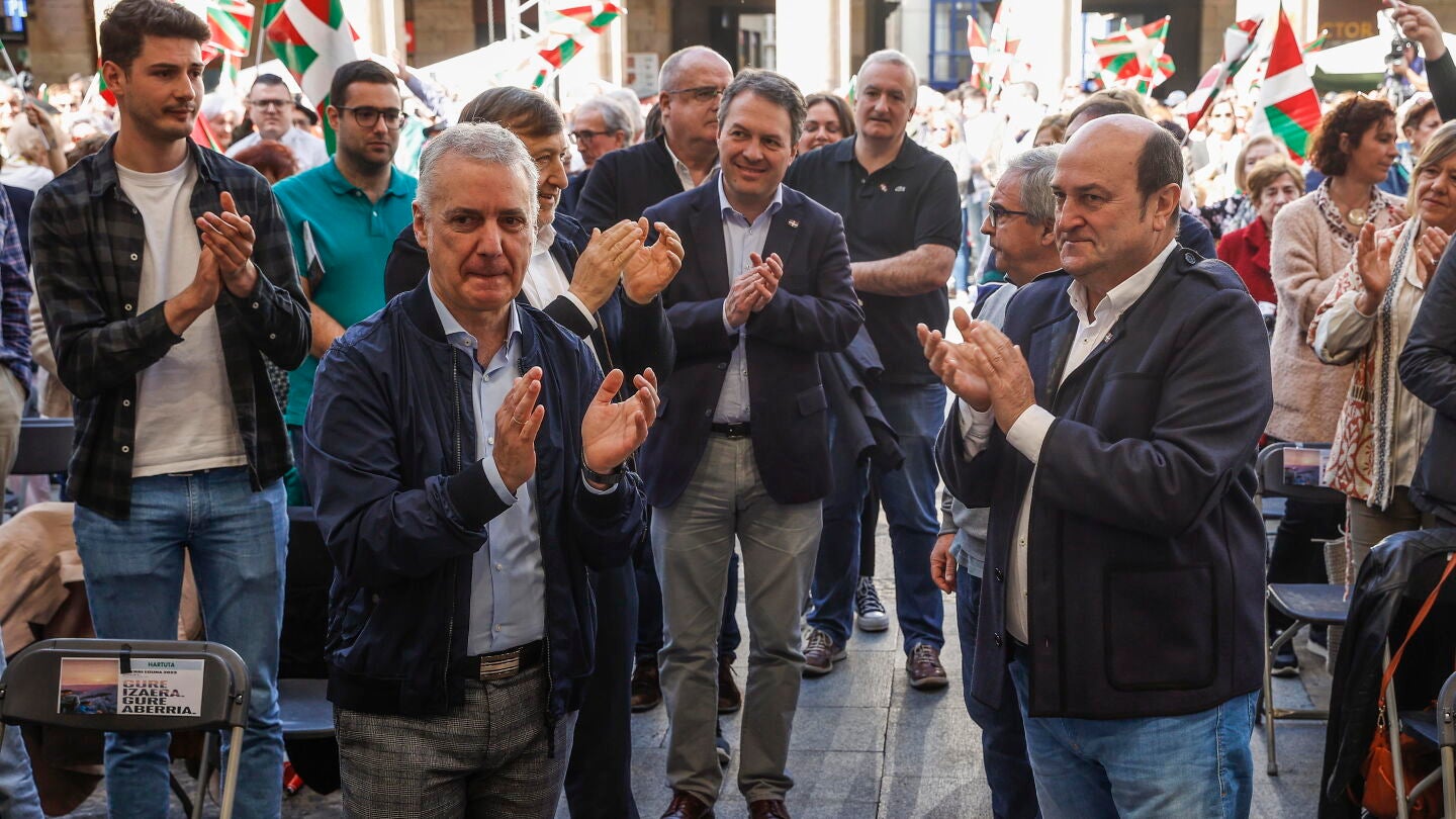 El PNV es "un partido auténtico" de abertzales, ha dicho, frente a otros, que "cuando se acercan unas elecciones, suele haber ejercicios de transformismo de partidos o coaliciones para ver si roban algún voto", en referencia a EH Bildu. Según ha ironizado, "meten en el armario el palestino, el forro polar y el flequillo cortado a motosierra, para ponerse chaquetas de diseño, camisetas de marca y cara de no haber roto nunca un plato".