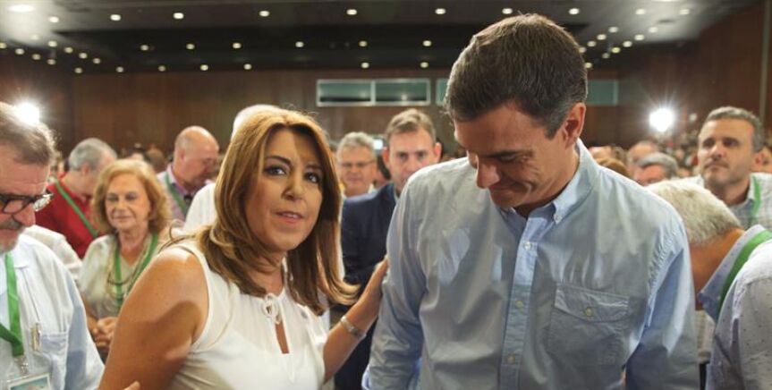 Pedro Sánchez y Susana Díaz entierran el recuerdo de la guerra pasada mientras la andaluza le promete "lealtad"
