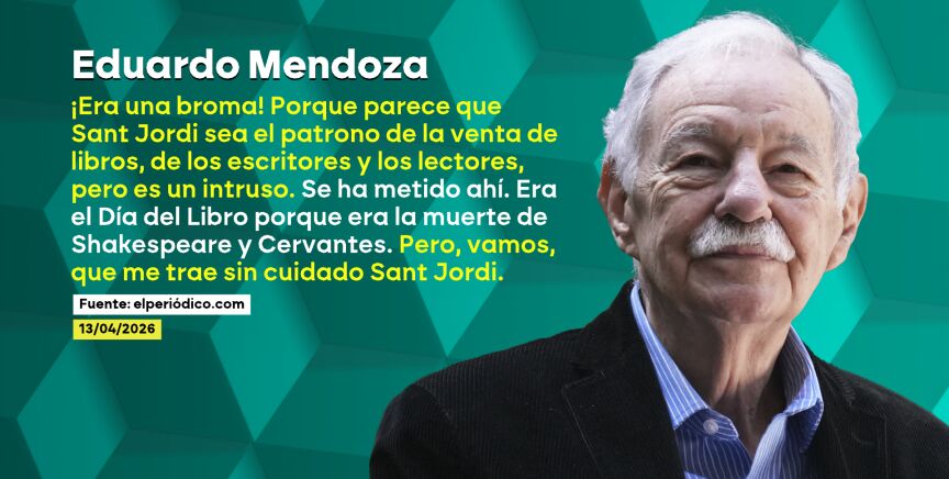 Las palabras de Eduardo Mendoza sobre Sant Jordi y los libros han traído cola. El escritor, coincidiendo con la presentación en Barcelona de su novela 'La intriga del funeral inconveniente', mostró su rechazo a que el 23 de abril sea 'el día de Sant Jordi' y no 'el Día del Libro'. "Voy a empezar a hacer campaña de que 'fuera Sant Jordi'. Es el Día del Libro. Siempre se le llamó Día del Libro. Sant Jordi no pinta nada. Era un maltratador de animales y seguramente no sabía leer", defendió.