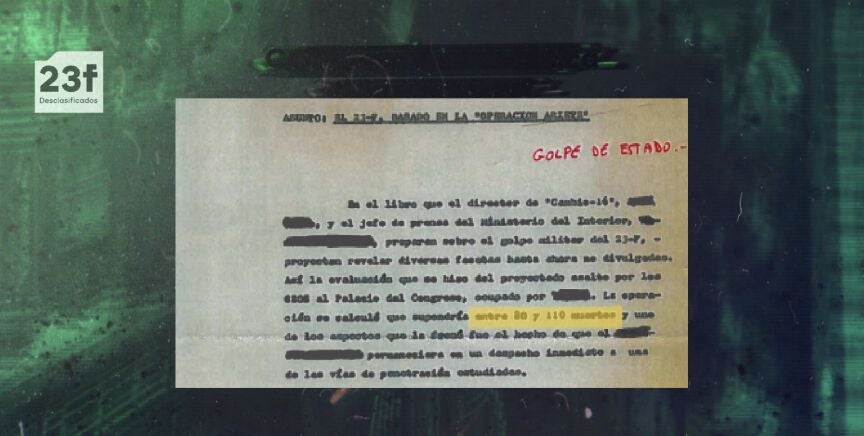 Todo esto quedó recogido en un informe de la Brigada de Interior, fechado el 18 de marzo de 1981. En él se hace referencia a una conversación entre los entonces jefe de prensa del Ministerio del Interior y el director del diario 'Cambio 16'. Hablaban de la redacción y publicación de un nuevo libro que destaparía "diversas facetas hasta ahora no divulgadas" sobre el 23F.