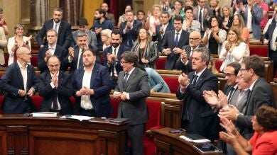 El Parlamento de Cataluña, con los votos a favor de Junts pel Sí (JxSí) y la CUP y en ausencia de los diputados de Ciudadanos, PSC y PPC, ha aprobado la Ley de Transitoriedad, que prevé convertir Cataluña en una república independiente, tras otro bronco y maratoniano debate parlamentario.