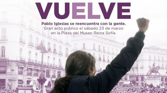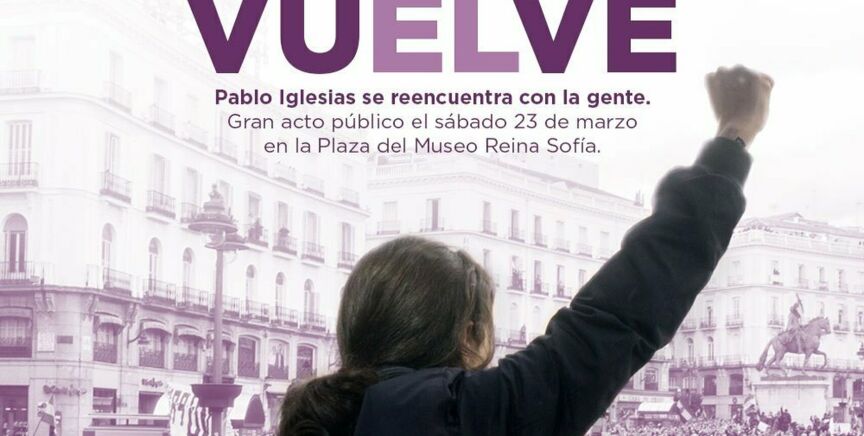 Pablo Iglesias reaparecerá el 23 de marzo en un acto en la plaza del Museo Reina Sofía. Un "reencuentro" con el que el líder de la formación morada, que regresa de una baja de paternidad, ha reconocido sentirse "con muchas ganas".