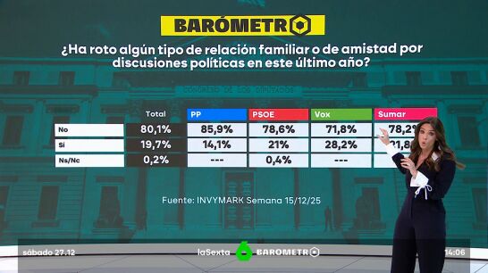 Son días de reunirse con la familia, con los amigos... en un clima de evidente polarización en nuestro país. Y en el Barómetro de laSexta hemos querido preguntar precisamente sobre ello.