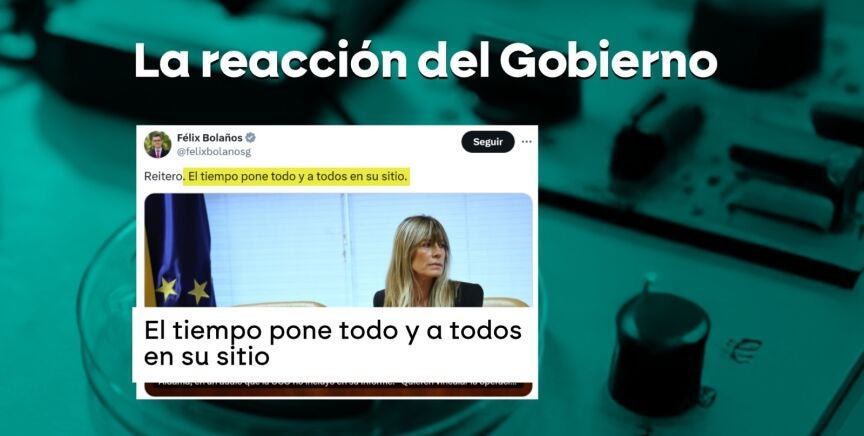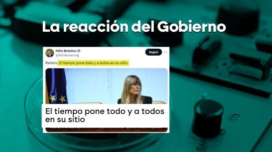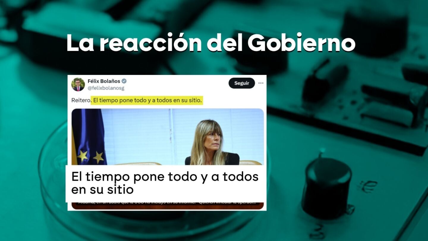 Las reacciones a estos nuevos audios y a las palabras de Víctor de Aldama desligando a Begoña Gómez del rescate, no han tardado en llegar. Félix Bolaños ha sido uno de los primeros en pronunciarse. El ministro de Justicia, ha escrito un mensaje en su cuenta de la red social X. En él insiste en que este viernes se ha empezado a aclarar todo. "El tiempo pone todo y a todos en su sitio", ha escrito. Escueto, pero directo y claro.