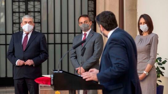 Así ha comenzado un sábado en el que se ha visto por primera vez a los protagonistas de este terremoto político tras haber sido acusados de transfuguismo. Poco después, eran expulsados del partido. A primera hora de la mañana, Miguélez (Consejería de Empresa, Industria y Portavocía), Álvarez (Empleo, Investigación y Universidades) y Sánchez (Transparencia) prometían "cumplir fielmente las obligaciones" de sus nuevos cargos como consejeros en el Palacio de San Esteban, sede del Gobierno de Murcia. Una situación que han aprovechado para defenderse de las críticas: "No somos tránsfugas. Quienes se han apartado de la línea del partido y del acuerdo que se firmó en junio de 2019 son otras personas, no nosotros".