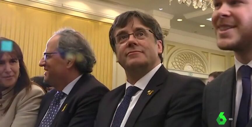Puigdemont y Torra celebraron en un céntrico hotel de Bruselas la conferencia que inicialmente se había previsto en las instalaciones del Parlamento Europeo pero que el presidente de ese organismo finalmente vetó por motivos de seguridad, un cambio que centró buena parte de la intervención de los independentistas y motivó sus críticas hacia las instituciones comunitarias.