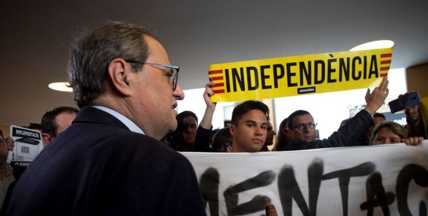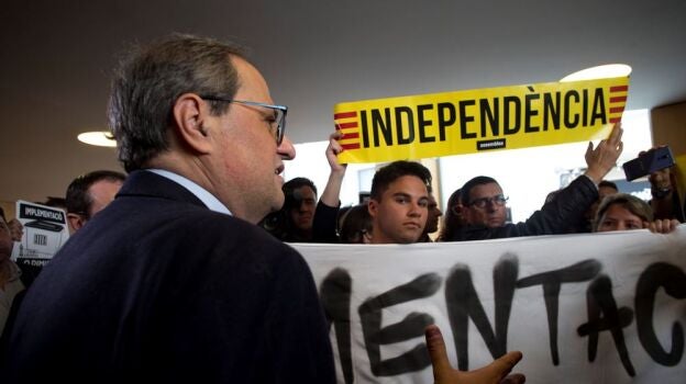 Torra ha estado en un acto en Sabadell donde ha tenido un pequeño encontronazo con un grupo de CDR que ha pedido al president que cumpla con sus promesas.