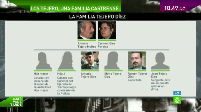 Antonio Tejero ha huido de los focos, de los periodistas y se ha recluido en su familia, pero, ¿quién es quién en la familia Tejero?, ¿a qué se dedican sus hijos y nietos? Esta es la radiografía de los Tejero.