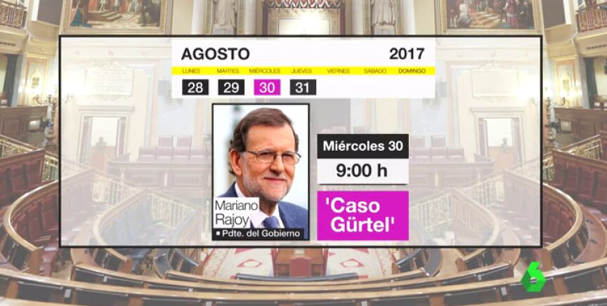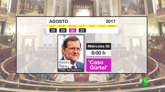 Se acerca lacomparecencia en el Congreso del presidente Rajoyy cinco ministros. La ronda la abre el martes 29 de agosto en la comisión de Empleo la ministraFátimaBáñez. El miércoles 30 de agosto, a las 9 de la mañana será el presidente del Gobierno quien dé explicaciones por el caso Gürtel.