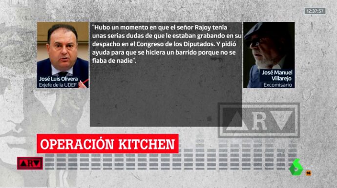"Rajoy tenía serias dudas de que le estaban grabando en su despacho del Congreso y pidió ayuda para que se hiciera un barrido porque no se fiaba de nadie. Y el que le ayudó se llama Villarejo", se escucha en esta conversación.