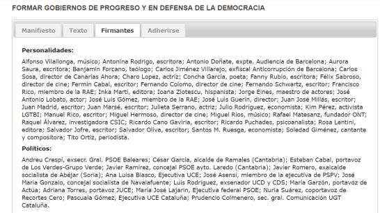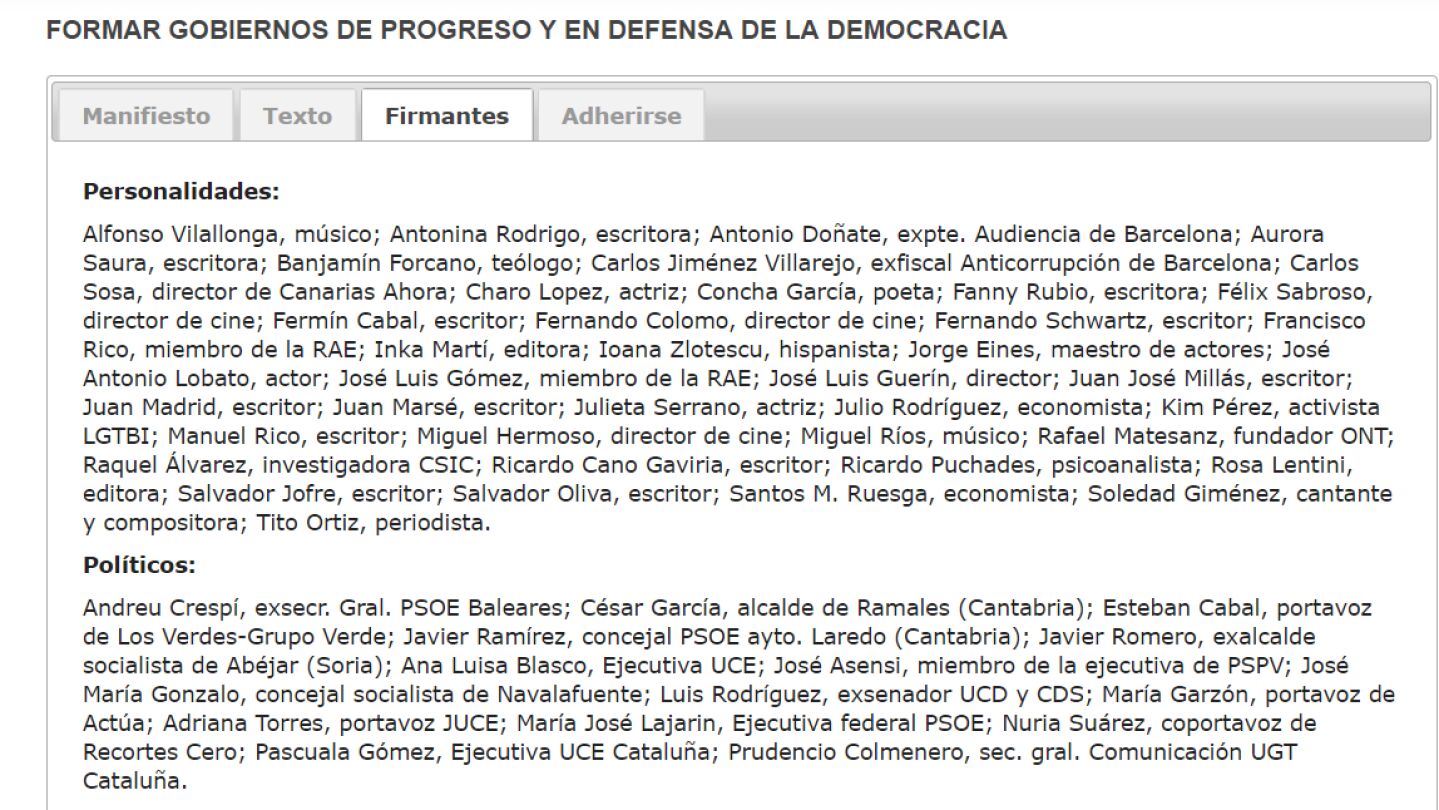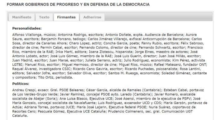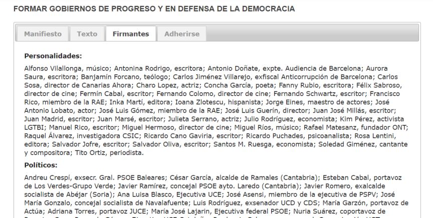 Rectificación sobre el manifiesto que pide "gobiernos de progreso" en ayuntamientos y comunidades