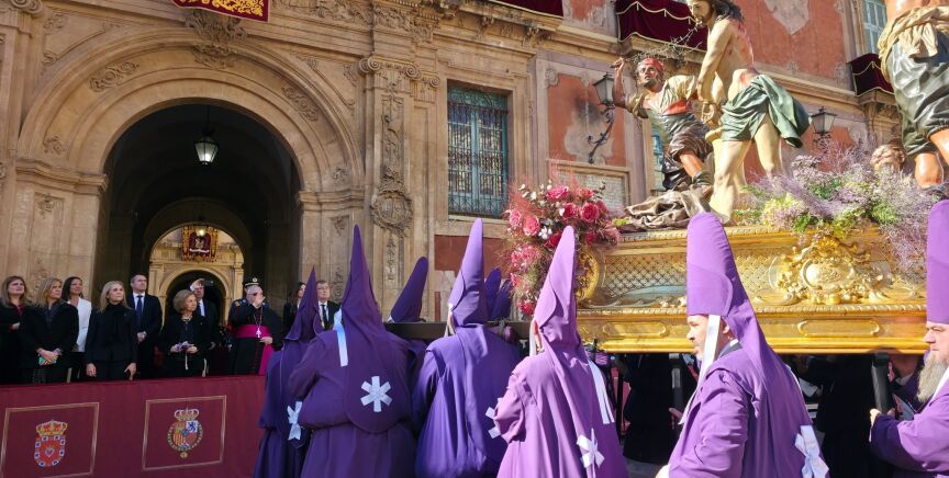 Uno de los momentos más destacados ha sido la apertura de la puerta del Perdón de la Catedral para la entrada del paso principal, un hecho que no se producía desde 1916 y que coincide con el 425 aniversario de la cofradía. La imagen de Nuestro Padre Jesús Nazareno accedió así al templo por un acceso reservado habitualmente a la patrona de la ciudad, la Virgen de la Fuensanta, o a la celebración del Corpus Christi, ante miles de asistentes.