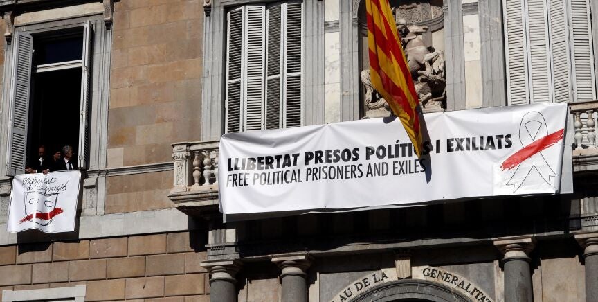 La Junta ha decidido activar las medidas que tenía sobre la mesa cuando comprobó que Torra no atendía sus requerimientos. Hace 10 días ordenó, a petición de Ciudadanos, que todos los edificios de la Generalitat estuvieran libres de la simbología que el independentismo ha adoptado los últimos meses para reivindicar la libertad de los presos del 'procés'. La prohibición entraba en vigor el martes por la tarde, pero Torra esperó hasta la mañana del jueves para dar una respuesta. Y se limitó a modificar la pancarta que lucía en el balcón de la Generalitat por otra con el único cambio de que el lazo ya no era de color amarillo, sino blanco con una franja roja.