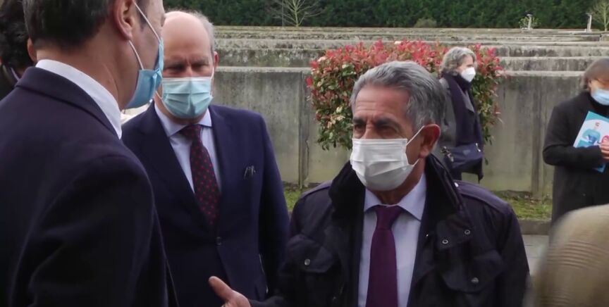 El presidente de Cantabria fue cazado por las cámaras este lunes cuando charlaba sobre los datos de la pandemia en Madrid con varias personas, algunos de ellos consejeros de la comunidad, tras un acto oficial en Reinosa.