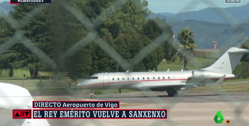 El rey emérito ha aterrizado en el aeropuerto de Vigo poco antes de las 14:00 horas del mediodía. Es la segunda vez que Juan Carlos I pisa suelo español en apenas un mes.