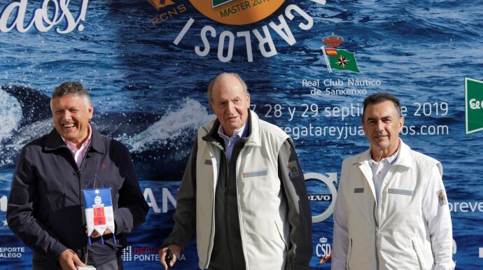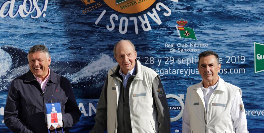 El rey emérito llegó a Sanxenxo para acompañar este campeonato, que según el presidente del Real Club Náutico, Pedro Campos, reunirá a más de 200 barcos y a "lo más granado" de las diferentes clases, con la novedad este año de que la prueba será puntuable para el Trofeo Juan Sebastián Elcano con motivo del quinto centenario de la primera circunnavegación.