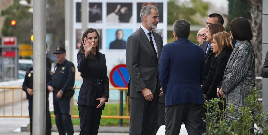 Los reyes han acudido al Palau de la Música de València, cerca del hotel donde se encuentran algunos de los vecinos realojados, para visitar a los afectados por el incendio.